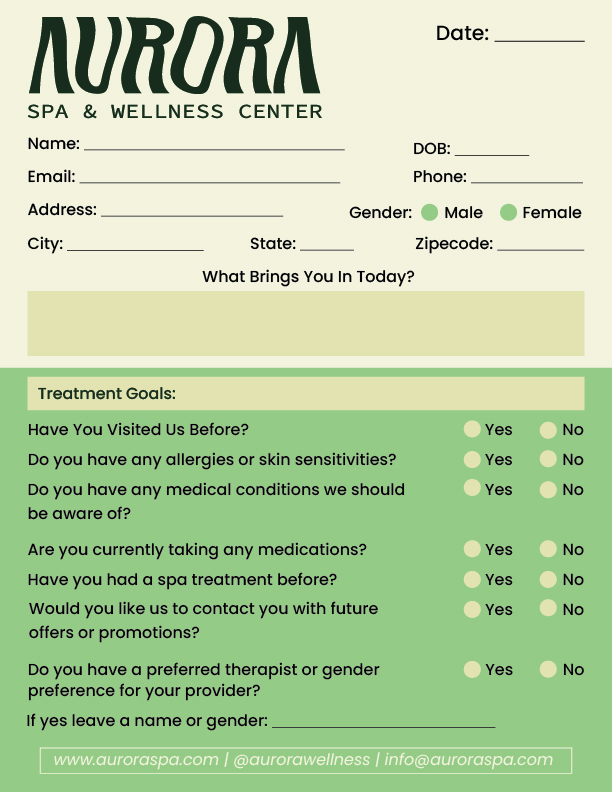 In the end, the form is easy to navigate, gives the spa team what they need to provide personalized care, and still feels calm and on-brand.